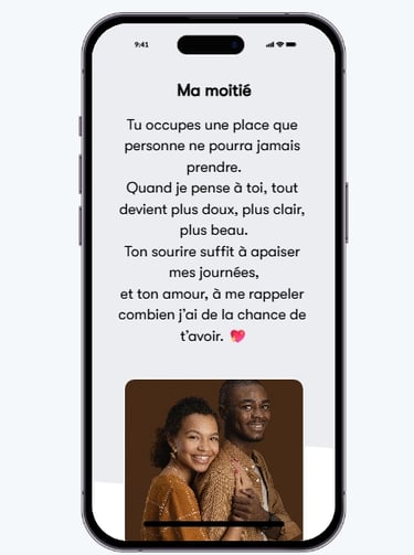 Nous concevons un portrait unique à partir de votre photo. Au dos, un QR Code est imprimé : en le scannant, la personne découvrira votre message, vos photos et vidéos.
